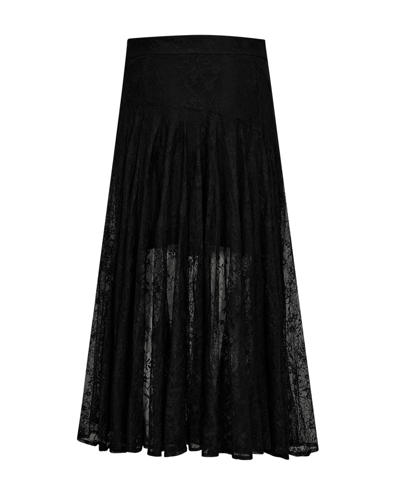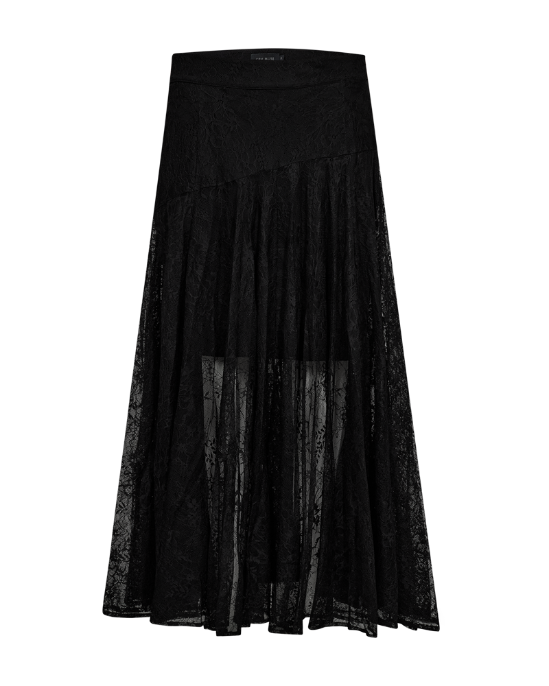 Elegant nederdel fra Copenhagen Muse med fine blondedetaljer og halv inderkjole, som giver et let og feminint udtryk, hvor benene stadig anes. En særlig og sød detalje er, at blonden er syet skråt, dér hvor den begynder at falde løst, hvilket skaber et smukt og eksklusivt look. En nederdel der både kan styles til hverdag og fest.