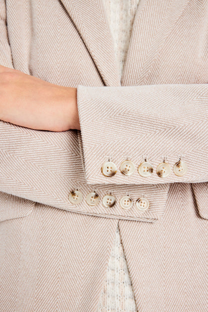 Flot, lys blazer fra Gustav. Blazeren er enkeltradet og lukkes med to knapper. Du kan også lade den stå åben. Style med en strik under på de kolde dage. Blazeren er super flot sammen med de fine Marit bukser.