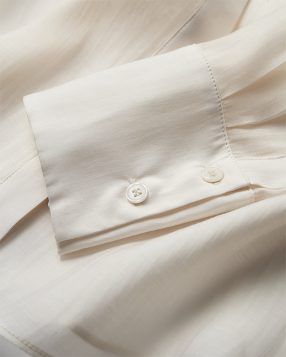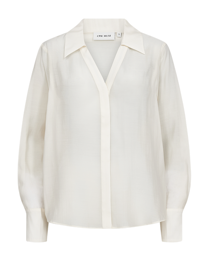 Enkel og fin skjorte fra Copenhagen Muse i off white lyocell. Den tynde kvalitet og let transparente look giver skjorten et let udtryk.
