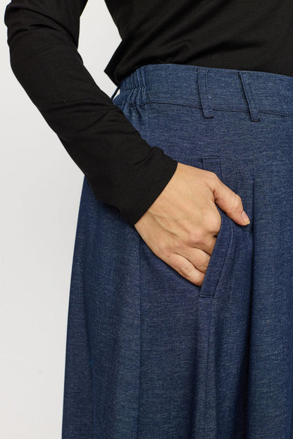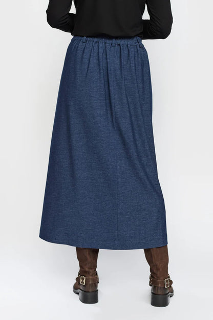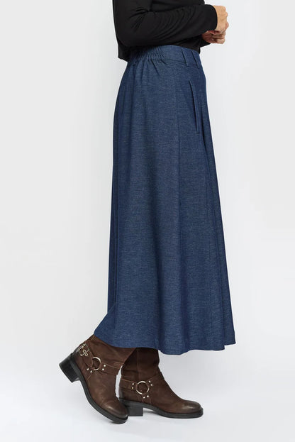 Elegant lang nederdel fra 2-Biz i blødt materiale med stilfuldt denim-look. Nederdelen har elastik i taljen for en behagelig pasform samt bæltestropper, der giver mulighed for at style med bælte.