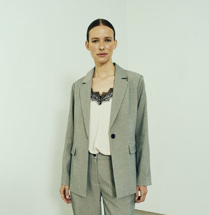 Smuk lysegrå bluse fra Freequent i let og luftigt materiale. Blusen har fine detaljer med delikate folder og en elegant V-halsudskæring, der fremhæver din feminine silhuet.