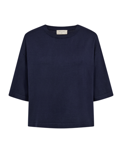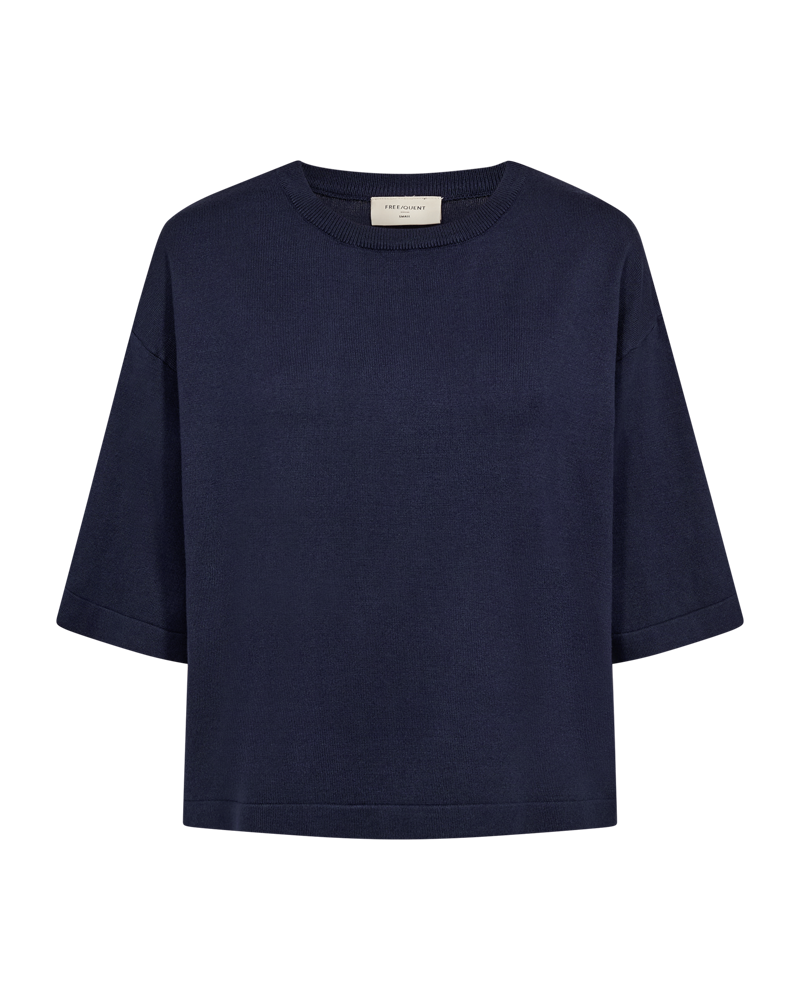 Skøn bluse fra Freequent i en dyb mørkeblå farve. Perfekt til alle anledninger - style den med dine yndlingsjeans for et elegant look.