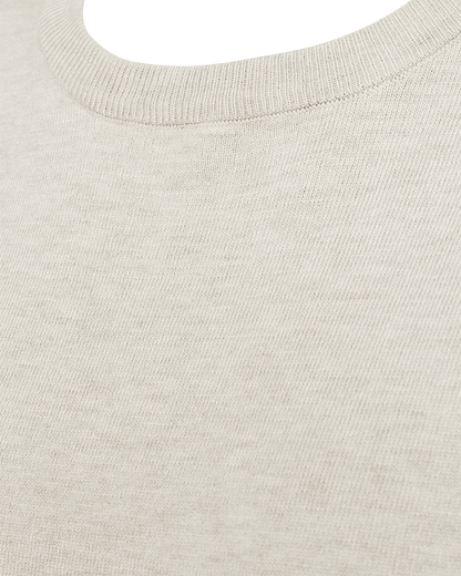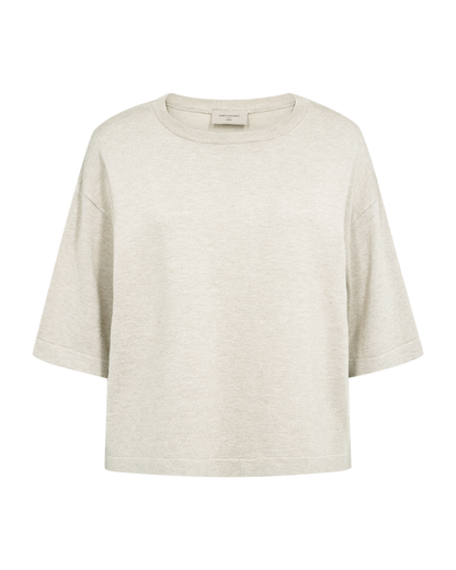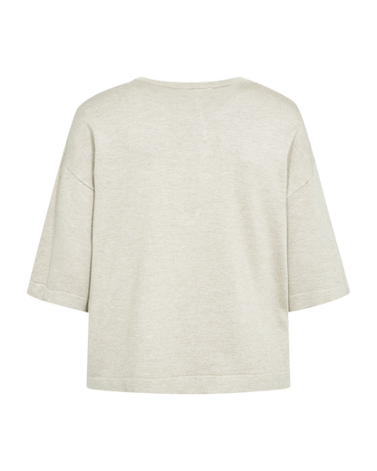 Smuk strikbluse fra Freequent i en lækker sandfarve. Blusen har fine detaljer med ribkant ved halsen og ærmerne, som giver et elegant touch.