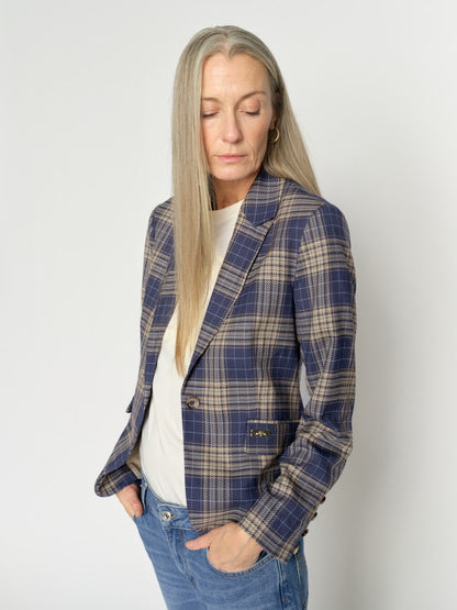 Fed, ternet blazer fra Mos Mosh med dyb revers. Blazeren er fitted, så du får et lækkert, taljeret snit. De dekorative flaplommer er kun til pynt, men giver et fedt udtryk. Style som du ser på billedet til dine yndlings jeans. Du kan måske nøjes med en t-shirt under eller din hvide skjorte, hvis det skal være knap så casual.