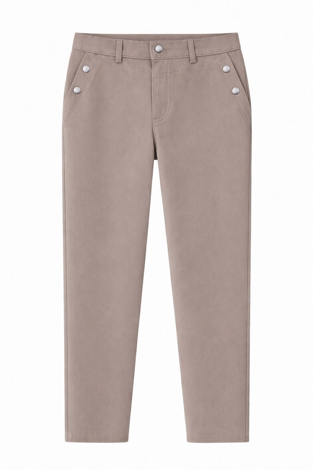 Den gode Karcemona buks fra 2-Biz er kommet i en flot, lysebrun farve til foråret. Buksen har de flotte knap detaljer ved lommerne og en tætsiddende pasform med galon ned langs siderne. Den smarte galon har en slankende effekt, så du kan føle dig godt tilpas i dine bukser. Style med off white bluser, så du rigtigt fremhæver den lysebrune farve.