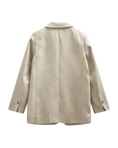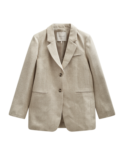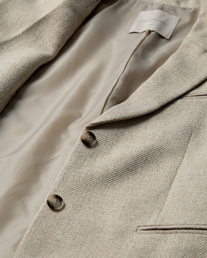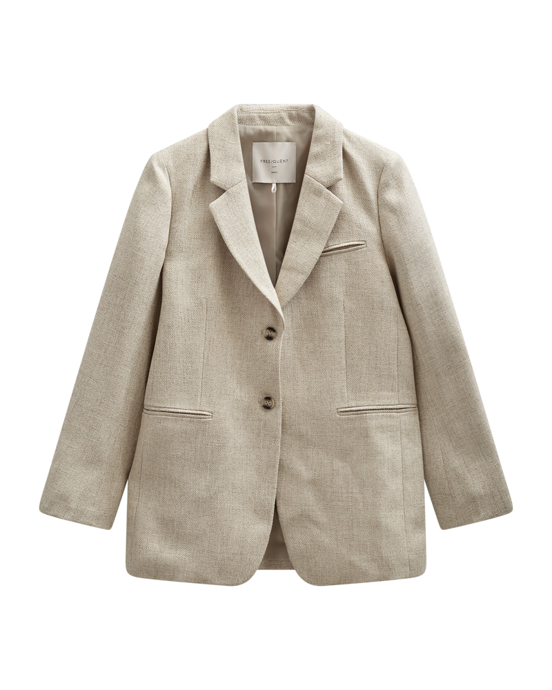 Skøn blazer fra Freequent i en lys sandfarve, perfekt til sæsonens garderobe.