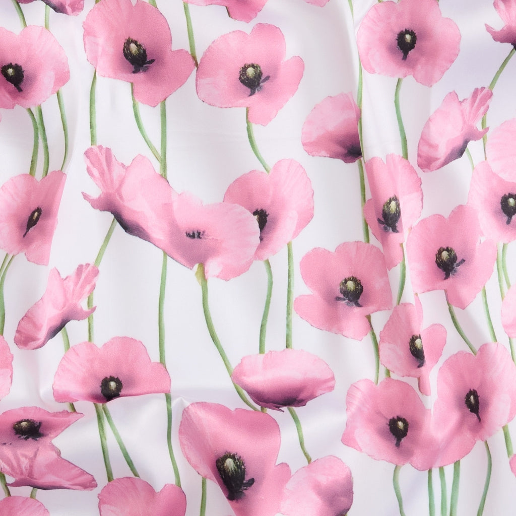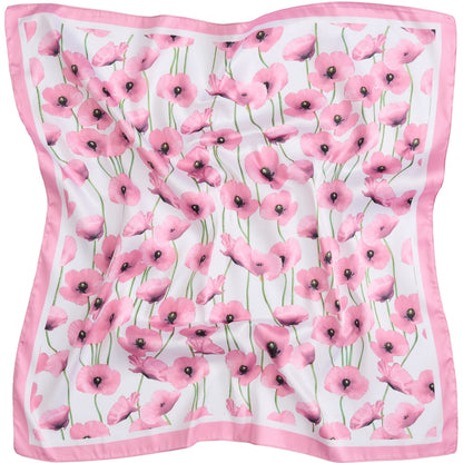 Sødt forårs tørklæde fra Marta du Château med pink valmuer. Tørklædet er den perfekte måde at give dit outfit et ekstra pift og måske tilføje lidt farve på et ellers neutralt sæt tøj. Kvaliteten er shiny og giver derfor et elegant touch.