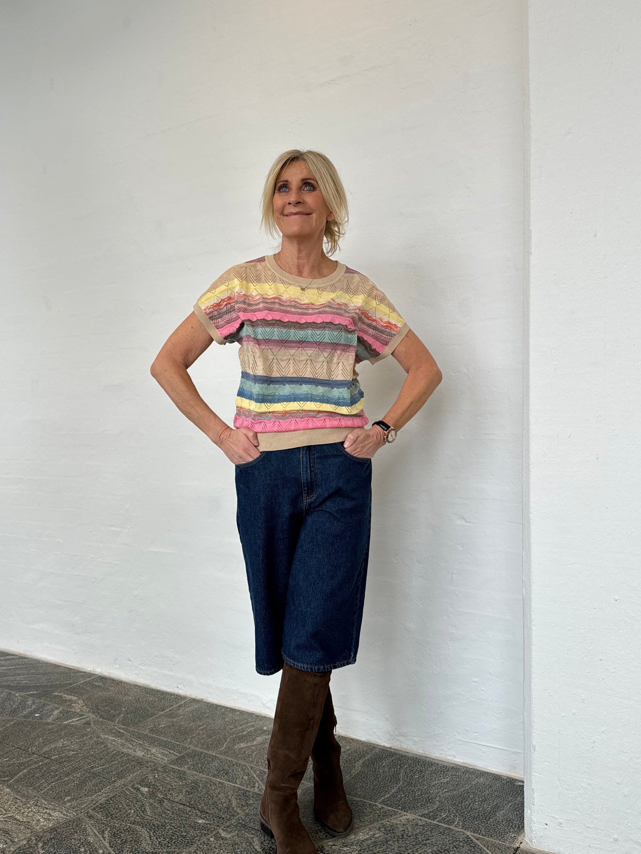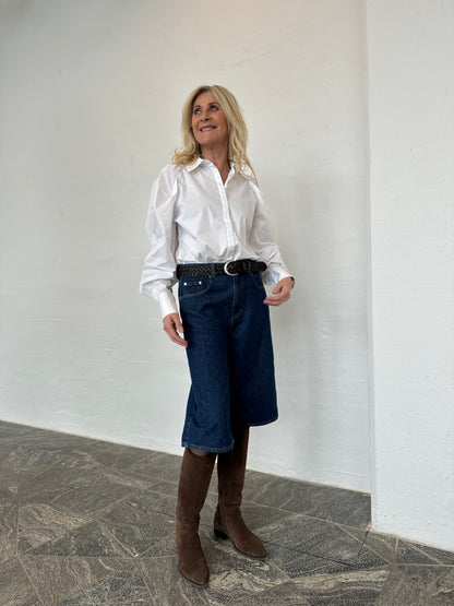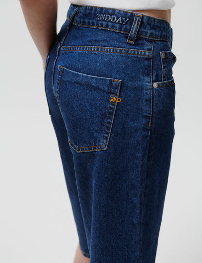Smarte bermudashorts fra 2nd Day. De fede shorts er lavet i mørkeblå denim med god vidde i buksebenene. Der er lommer i siderne og klassiske baglommer. Hvis du mangler inspiration til styling kan du kigge på modebillederne. Der er shortsene stylet på forskellige måder med strik, skjorte og tanktop.