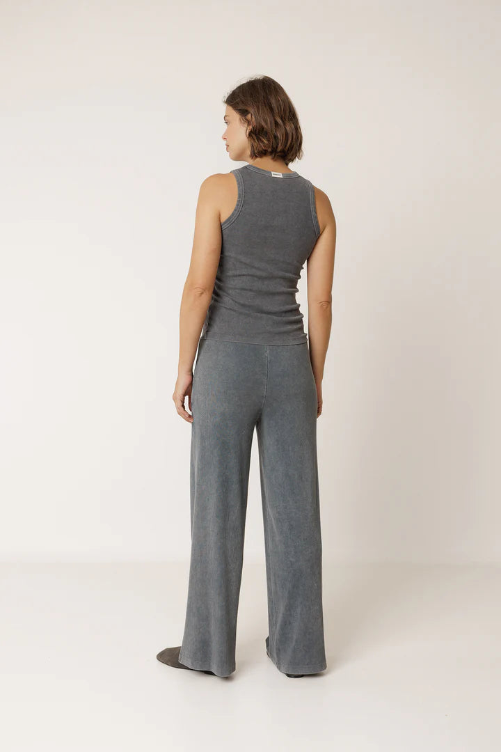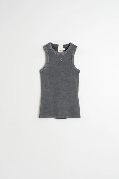 Skøn ribtop fra Indi & Cold i en støvet, antracit grå farve. Toppen har brede stropper og sidder flot til, så du får en fin figur.