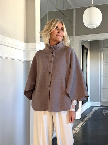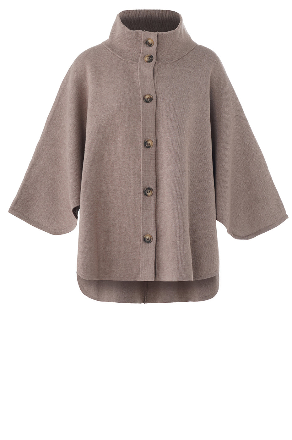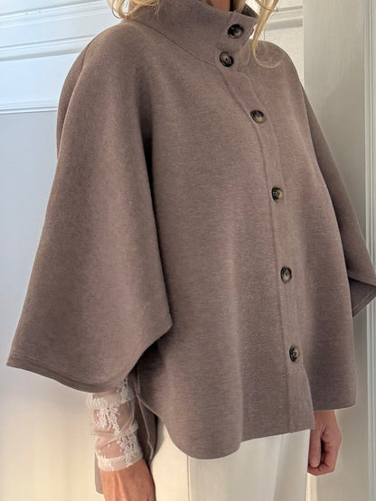 Lækker, strikket kappe fra Luxzuz. Den varme farve er perfekt til alt dit lyse tøj. Brug kappen som en overgangsjakke eller style den som en del af dit outfit. De store flagermusærmer giver den flotte poncho effekt.