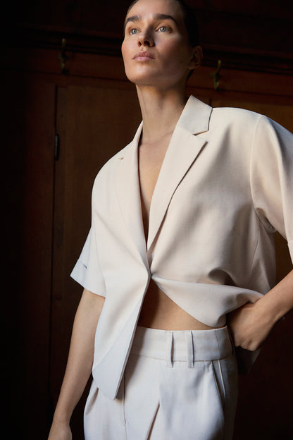 Brug blazeren sammen med et par lyse bukser fra Gustav for at skabe et sammenhængende og let udtryk. Kombinationen af det korte snit og de lyse farver fungerer særligt godt til forårets begivenheder, hvor du har brug for et let lag over din overdel. Du kan også style den med en enkel nederdel.