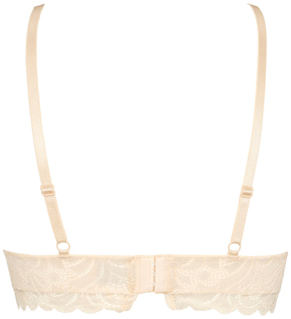 Denne bh uden bøjle fra Missya kombinerer et let og naturligt udtryk med optimal bevægelsesfrihed. Modellen er designet i en flatterende trekantsfacon, der giver en pæn v-udskæring, mens de brede blondedetaljer langs kanten og under barmen sikrer, at bh'en sidder stabilt og behageligt mod huden hele dagen. Det bløde materiale med masser af stræk gør den ideel til både hverdag og afslapning.