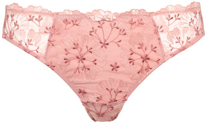 Malou Dusty Rose fra Missya er en elegant G-streng, der kombinerer fine detaljer med et strømlinet snit. Forsiden er prydet med detaljeret blomsterbroderi på et transparent underlag, mens en lille sløjfe i taljen fuldender det gennemførte design. Bagpå er trussen udført i et let mesh-materiale, der sikrer en diskret overgang under tøjet.