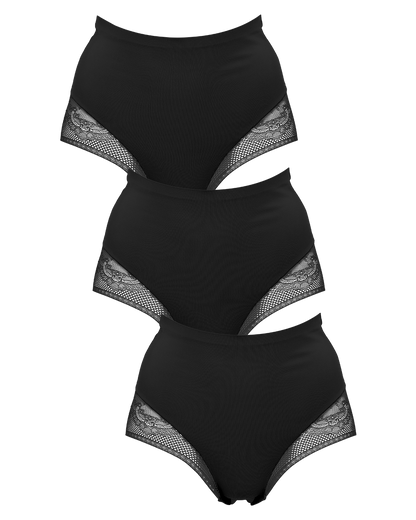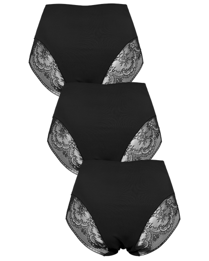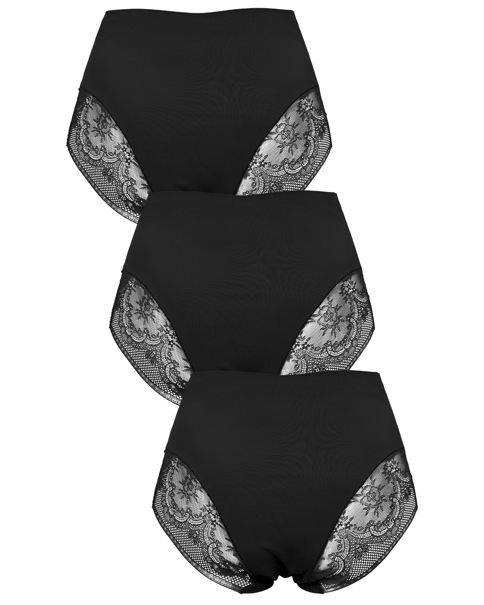 Opgrader din undertøjsskuffe med dette praktiske 3-pak sæt fra Missya. Disse maxi-trusser kombinerer en glat, sømløs finish med elegante blondedetaljer ved benudskæringerne, hvilket skaber et diskret look under tøjet. Den høje talje og de fine materialer sikrer en strømlinet silhuet og en pasform, der følger kroppens bevægelser.