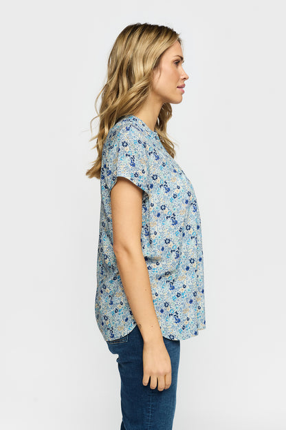 Kombiner blusen med et par mørkeblå jeans for at fremhæve de forskellige blå toner i printet til et gennemført hverdagslook. Du kan også bruge den sammen med en let nederdel på ferien, hvor de fine læg og det lette stof sikrer en flot figur. Blusens snit gør den nem at bruge både løsthængende eller stukket ned i et par bukser for at markere taljen.