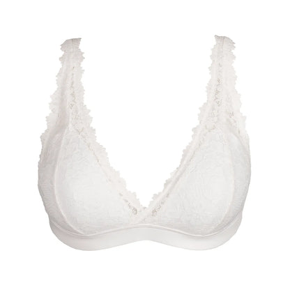 Denne bh uden bøjle forener et feminint udseende med ultimativ frihed. Det gennemsigtige blondemateriale dækker skålene og fortsætter op mod skuldrene, hvilket giver et let og elegant udtryk. Snittet er designet til at give en naturlig form, mens det brede elastikbånd under barmen sikrer, at bh'en bliver siddende korrekt hele dagen. Fuldend dit look med de matchende trusser fra samme serie.